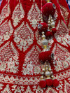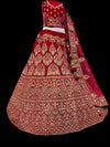 Dark Red colour velvet based lehnga with heavy handwork with stones & embroidery work fully heavy flared beautiful designer Readymade Bridal lehnga with very heavy embroidered netting dupatta (heavy latkans attached ) unstitched lehnga