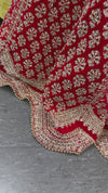 Dark Red colour velvet based lehnga with heavy handwork with stones & embroidery work fully heavy flared beautiful designer Readymade Bridal lehnga with very heavy embroidered netting dupatta with kamarbelt SIZE 42(UPTO 44)