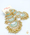 Pastel Mint Colour Mennakri Work With Kundan & Pearls Chandbali Earrings