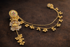(Video clip attached)Trending Kashmiri Earrings/Traditional Bridal Jhumka with Antique Gold Finish & Kundan Stones (Ruby & Green tones) Pearl Beads and Decorative Hair Chain (Sahara)