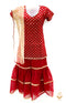 peach colour silk based embroidered kameez with netting purple colour plazo