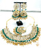 Bottle green colour pearls with original mirror work necklace set with earrings & tikka