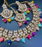 Original Polki stone with pearls beaded heavy work necklace with earrings and tikka set