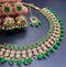 Original Polki stone with pearls beaded work beautiful necklace with earrings and tikka set