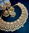 Original Polki stone with pearls beaded work beautiful necklace with earrings and tikka set