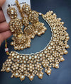 Original Polki stone with pearls beaded work beautiful necklace with earrings and tikka set