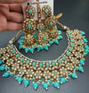 Original Polki stone with pearls beaded work beautiful necklace with earrings and tikka set