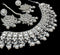 Silver color Beautiful jerkan stone with pearls beaded necklace with jhumka and tikka set