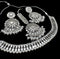 Silver color Beautiful fine jerkan stones with pearls beaded choker necklace with earrings and tikka set