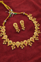 Elegant matte-finish light gold necklace set featuring intricate traditional motifs with subtle multicolor stone detailing, paired with matching statement earrings. Perfect for adding a graceful, timeless charm to any ethnic look. ✨