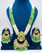 Golden colour meenkari with kundan work pendant Long rani haar with pearl work set with beautiful design earrings
