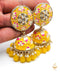 Lime green colour kundan stone with pearls work beautiful meenakari Jhumka