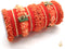 Pastel Peach colour velvet bangles with pearl & Floral Kade beautiful bridal set