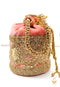 Red Colour Velvet Based sequined & Stone Work With Pearl Work Handle Beautiful Potli Bag