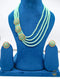 Turquoise colour jerkan stone work & pearls beaded long necklace with small studs necklace set