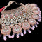 (video clip attached)Pastel Pink & Mint color Original American Diamond stones with Polki & pearls studded very Heavy work necklace with beautiful Jhumka, tikka NOTE:- original AD & Polki stones not fake plastic stones)
