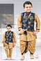 Cream colour silk based kids Kurta Pajama & Dhoti (2 Styles )with Orange Colour brocade silk jacket with broach & Mala