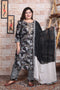 Black color Rayon based on embroidery work flared kurti with pants & dupatta