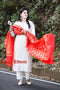 Cream color Pure cotton based Chikankari work with sequinned design kurti with Plazo pants & Silk Dupatta