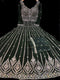 Georgette Based sequined work design at (front and Back )Flared Kameez /Gown And netting Based Embroidery with sequins Work Dupatta