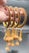 Beautiful Rosegold fine stone shiny Brass Bangles with Beautiful Latkan set (Sample picture attached at end to show it can be customised with plain Velvet or Metal Bangles)set of 4 Bangles
