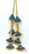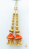 Sea green colour cushioned designed with golden pearls long latkans 35cm (pair)