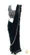 Blue colour sequin work stitched blouse with readymade soft satin silk floral print saree (blouse size 38 , Upto 42)