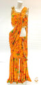 Dark Peach colour colour floral print stitched blouse with readymade soft stretchable floral print sharara saree (blouse size 38 , Upto 42)