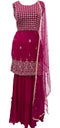 Georgette based embroidery work with mirror work neck design Nayara cut Kameez with plazo & Georgette Dupatta