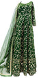 Chiffon based embroidery work with sequins design on neck, heavy flared long kameez with georgette work dupatta