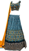 Embroidery with mirror work designer blouse with multicolour printed lehnga with netting dupatta