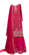 Pure Georgette based heavy embroidery work with Jerkan stones work kameez & Sharara and Pure Georgette embroidery border work Dupatta