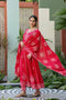 Cotton based embroidered & block print Anarkali Kurti with pants & Dupatta