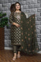 Rayon based embroidery with mirror work & printed work design beautiful Nayra Cut kurti with Plazo pants & Dupatta