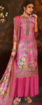 Designer Woolen Collection Fabric TOP :- *Pashmina jacquard Print with exclusive SwarovskiDiamond WORK cut:-2.50 mtr appx BOT:-*Heavy spun bottom 2.50mtrDupatta:- TWILL SHAWL * PRINTED 2:25 cut Size: Unstitched