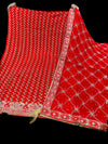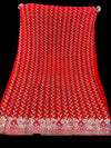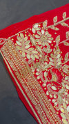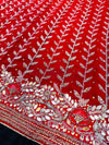 Red color pure chinnon based embroidery work with handwork kameez with plain silk bottom fabric (2.75 mtrs) and chiffon based heavy hand work dupatta