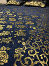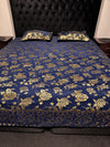 Roses Print Velvet golden zari Work Bed Sheet (275cm x 265cm)king size King Size Bedsheet With Double Pillow Cover