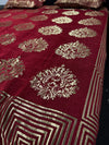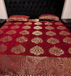 Roses Print Velvet golden zari Work Bed Sheet (275cm x 265cm)king size King Size Bedsheet With Double Pillow Cover