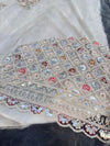 (Video clip attached )Party wear cream color heavy sequined and maroon color embroidery work multiflared very heavy lehnga with heavy work design in blouse and embroidery dupatta (Unstitched Lehnga)