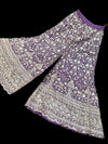 (Video clip attached)Purple color shiny soft silk based heavy embroidery work kameez with heavy embroidery work sharara pants and soft silk dupatta with embroidery border
