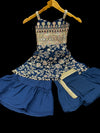 (Video clip attached)Peacock Blue color Pure and soft georgette based sequined with embroidery work girls sharara suit with dupatta