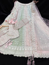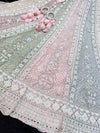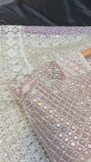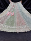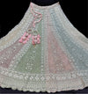 (Video clip attach)pastel multi color engagement /semi bridal lehnga with full of stones & embroidery work heavy multi flared and with very heavy embroidery work netting dupatta and blouse piece