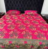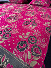 Roses Print Velvet golden zari Work Bed Sheet (275cm x 265cm)king size King Size Bedsheet With Double Pillow Cover
