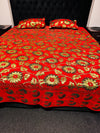 Roses Print Velvet golden zari Work Bed Sheet (275cm x 265cm)king size King Size Bedsheet With Double Pillow Cover